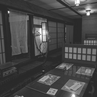 The central dining section consists of private Japanese-style zashiki dining rooms. Zashiki is a traditional Japanese restaurant seating arrangement featuring a low table set on tatami flooring. Before entering the room, you take off your shoes and place them on the small shelves. Brush aside the floor-length noren and find your spot on a cushion next to the low table. There is a sunken floor so it is not necessary to sit on your knees or cross-legged.