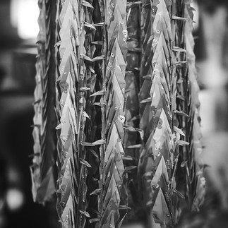 Going down the stairs, I'm not exactly sure what is more baffling. The faint babble of water once again making itself known or the outline of what appears to be a tree at the base of the stairs . . .